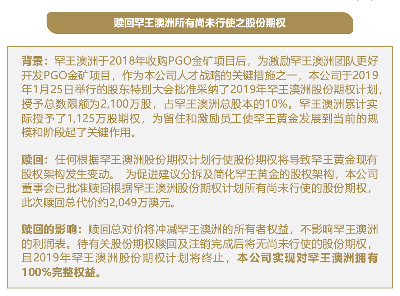 赎回罕王澳洲所有尚未行使之股份期权