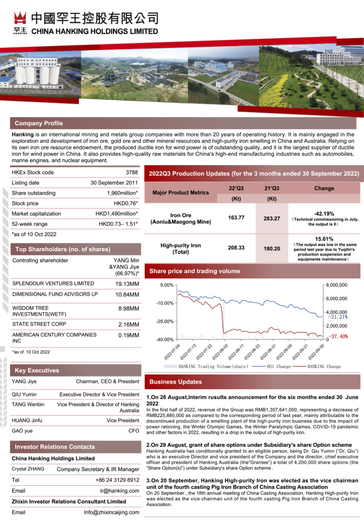 2022Q3 Production Updates (for the 3 months ended 30 September 2022)