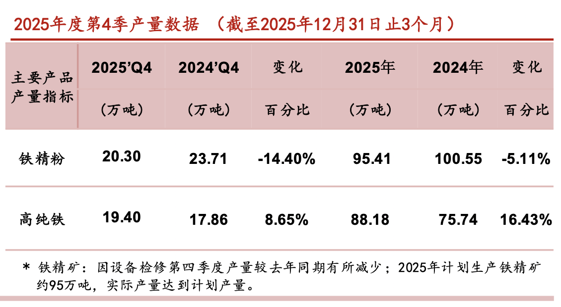 2025年度第4季产量数据